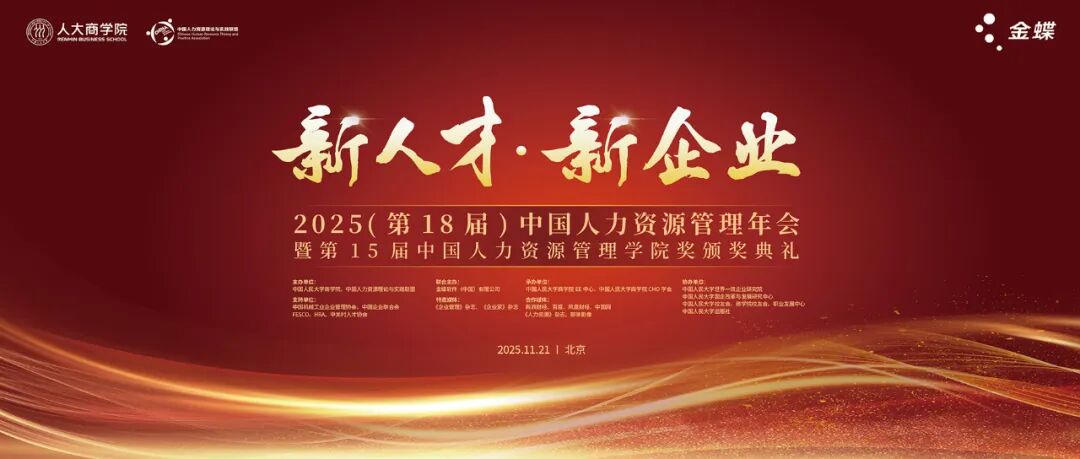 党的二十届四中全会提出“统筹教育强国、科技强国、人才强国建设”目标,将人才置于推动高质量发展的核心位置。当前,技术革命与商业变革以前所未有的速度交织碰撞,企业的竞争逻辑正被深度重塑。生成式AI、量子计算和生物科技等颠覆性技术的爆发,催生了一类全新的企业和人才形态——"新企业"和"新人才",他们正在改写商业竞争的底层逻辑。 "新人才"是这场变革的核心驱动力。他们不仅拥有顶尖的硬核技术能力,更具颠覆性思维和跨界整合能力。这类人才拒绝传统的管控模式,追求使命驱动的工作方式,其价值创造难以用常规KPI衡量。与此同时,一批以核心技术为驱动的“新兴企业”,凭借独特的文化价值观和扁平化组织架构,在短短数年间实现了传统企业难以企及的增长速度。这些“新企业”的共同点在于:摒弃僵化的层级管理,通过激发员工自驱力与创造力,推动企业突破低效竞争,迈向高质量发展新赛道。 本届年会以“新人才·新企业”为主题,特邀最具革新精神的杰出企业领袖和最懂中国管理的资深学术专家汇聚一堂,结合领先企业的鲜活案例,揭示如何通过文化引领、敏捷架构与AI赋能,打造真正激发创造力的组织生态,为中国企业的人力资源管理创新树立标杆和典范。 活动概况 主办单位 中国人民大学商学院、中国人力资源理论与实践联盟 联合主办 金蝶软件(中国)有限公司 承办单位 中国人民大学商学院EE中心、中国人民大学商学院CHO学会 协办单位 中国人民大学世界一流企业研究院、中国人民大学国企改革与发展研究中心 中国人民大学校友会、商学院校友会、职业发展中心、中国人民大学出版社 支持单位 中国机械工业企业管理协会、中国企业联合会、FESCO、HRA、中关村人才协会 特邀媒体 《企业管理》杂志、《企业家》杂志 合作媒体 新浪财经、百度、凤凰财经、中国网、《人力资源》杂志、即享影像 年会时间 2025年11月21日(周五) 年会地点 北京(具体地点短信通知) 参会对象 领先企业的董事长、总经理以及人力资源负责人等中高层管理人员 年会议程 嘉宾以实际现场为准 上午会议主持 郎婷婷 中国人民大学商学院助理教授 下午会议主持 李竹伊 中国人民大学商学院助理教授 8:30-9:00 签到 9:00-9:20 开幕致辞 易靖韬, 中国人民大学商学院院长、教授 9:20-9:50 主题演讲 锻造“能打胜仗”的组织——我的跨界实践与思考 张涛 安踏集团副总裁 9:50-10:20 主题演讲 人工智能赋能产业创新与人才发展 吕建红 智谱AI高级副总裁 10:20-10:50 主题演讲 新智人、新管理——“业-人-智”融合升级之道 周禹 中国人民大学商学院教授、组织与人力资源系系主任 中国人力资源理论与实践联盟秘书长 10:50-11:20 主题演讲 AI时代,人力资源管理的重塑与智能飞跃 蔡雪 金蝶软件(中国)有限公司助理总裁、HR事业部总经理 11:20-11:50 透视领导力的本源与未来 12:00-13:30 午休 13:30-14:00 第15届中国人力资源管理学院奖颁奖典礼 重磅发布 《2025中国人力资源管理最佳实践案例白皮书》 发布人 周禹 中国人民大学商学院教授、组织与人力资源系系主任 中国人力资源理论与实践联盟秘书长 揭晓奖项 2025中国人力资源管理最佳实践奖 颁奖嘉宾 张瑾 中国人民大学商学院副院长、教授 主题演讲 16:00-16:40 圆桌对话 破界生长——穿越周期的韧性增长与价值创新 主持人 祝金龙 中国人民大学商学院副教授 对话嘉宾 钱大群 点评嘉宾 16:40-17:10 闭幕主题演讲 制度分野与组织原则 葛建华 中国人民大学商学院副教授 参会须知 1、本活动以定向邀请为主,受邀嘉宾可免费参加,每家企业最多2个名额; 2、本活动面向领先企业的董事长、总经理以及人力资源部负责人等中高层管理人员免费开放100个公开申请名额(须进行资格审核,先报先得); 3、主办方审核资格后将及时反馈能否参会,活动当天报名者凭参会确认短信和本人名片现场签到参会(如报名资料与名片信息不符,主办方有权拒绝入场); 4、符合参会资格、确认参加的请点击二维码报名,报名截止时间为2025年11月18日。 扫描二维码报名 联系方式 发言嘉宾与学院奖评选 张老师 13810479121 报名参会与会务咨询 陈老师 18801260304 李老师 18612035597 陈老师 18800035986 课程推荐 中国人民大学商学院作为国内最优秀的商学院之一,是我国最早开办管理教育的商学院,是新中国工商管理教育的奠基者和开创者,办学历史始于1950年。扎根中国大地,研究中国问题,解决中国问题,中国人民大学商学院致力于成为“最懂中国管理的世界一流商学院”。 中国人民大学商学院高层管理教育(EE)中心作为国内高管教育先行者,引领中国管理实践、赋能组织与个人成长,4万余名精英校友遍布世界各地,超过75%中国500强企业人才培养的共同选择。 课程链接:2025|人大商学院高层管理教育课程总览