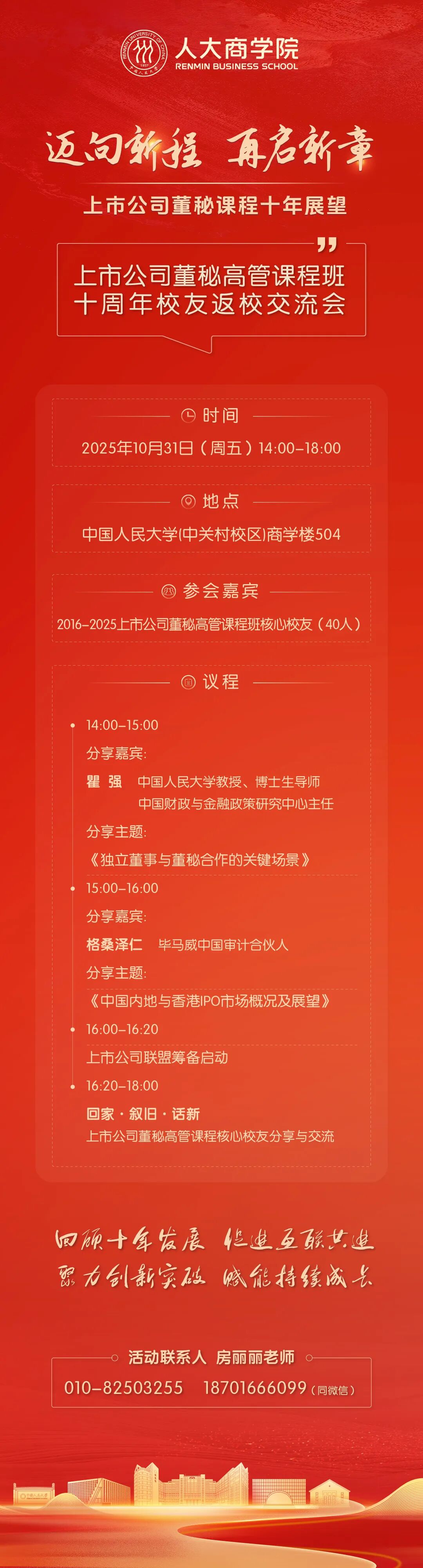 活动报名 | 上市公司董秘高管课程班十周年校友返校交流会