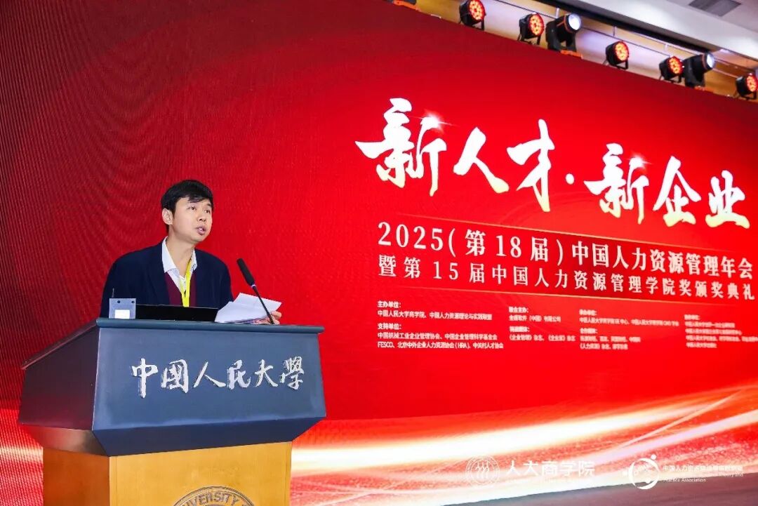 11月21日,以“新人才·新企业”为主题的2025(第18届)中国人力资源管理年会暨第15届中国人力资源管理学院奖颁奖典礼在中国人民大学逸夫会议中心隆重举办。本届年会由中国人民大学商学院、中国人力资源理论与实践联盟主办,金蝶软件(中国)有限公司联合主办,特邀多位具有革新精神的企业领袖与深耕中国管理实践的学术专家,围绕文化引领、敏捷组织、AI赋能、员工体验、全球人才管理、组织效能激活、国企职业经理人治理等核心、热点议题展开深度研讨。年会通过精心策划的十场高水平主题演讲与一场深度圆桌对话,并现场揭晓“2025中国人力资源管理最佳实践奖”,彰显出中国人力资源管理领域思想引领与实践创新的实力与水平。会议由中国人民大学商学院助理教授郎婷婷、李竹伊共同主持。