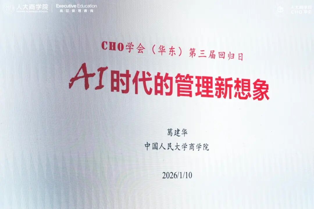 2026年1月10日,中国人民大学商学院EE CHO华东学会第三次回归日活动在上海圆满举行。这是一次故友重聚的温馨归程,更是一场思想碰撞、远见共生的启航盛会。来自各地的CHO学会会员与行业专家齐聚一堂,本届CHO回归日以【“新技术·新管理”———AI&全球化时代下的管理新现象】为主题,共同探讨了AI时代下的管理新想象与跨文化领导力的深刻内涵,为未来的组织管理与人才发展绘制了清晰的前行蓝图。