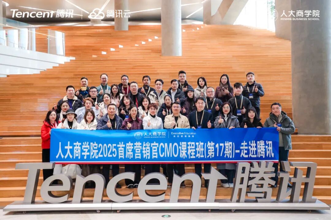 2026年1月9日,人大商学院首席营销官CMO课程班(第17期)企业参访活动在腾讯总部顺利开展,班级学员以及致力于品牌与市场领域的人大校友共30余人到访。